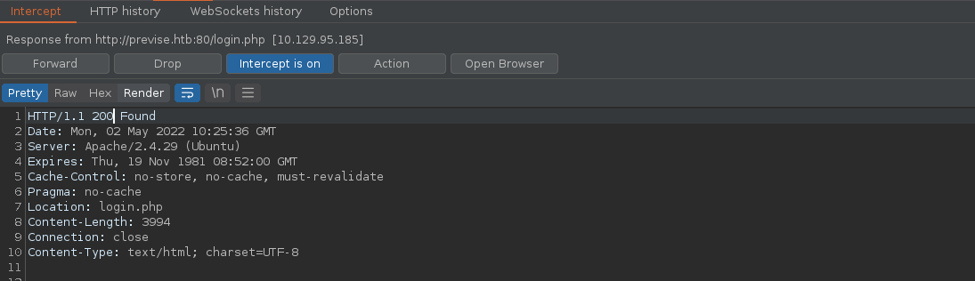 So instead let's just intercept the request, and and also intercept the response to this request: