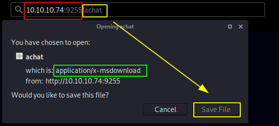 going to /achat we seem to get a binary file so let's download it locally and see what it says :
