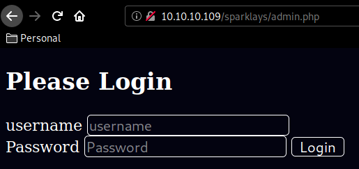 From here we have an interesting folder : /sparklays/admin.php which is a login panel: