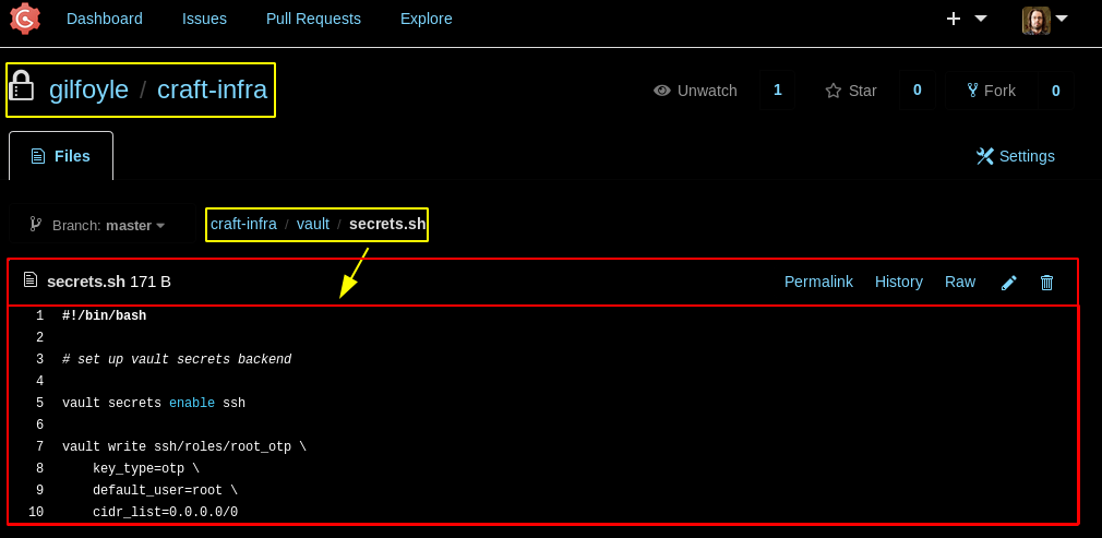 gilfoyle@craft:~$ vault ssh -mode=otp -role=root_otp root@127.0.0.1