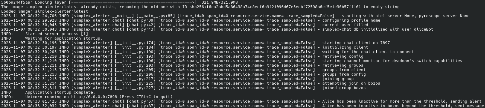 [alice@deniably-rented-vps:~/alerter]$ docker load < simplex-alerter.tar.gz