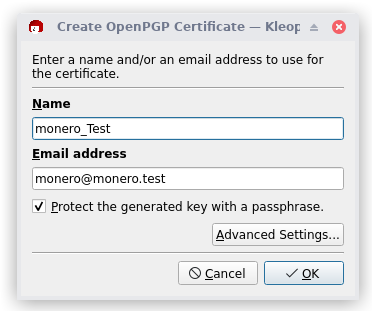 I will be using Kleopatra(GUI) and gpg(CLI) and will demonstrate on Monero.