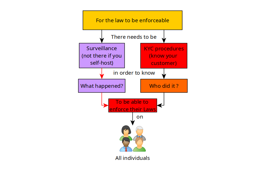 So in this case, you are taking out the first pillar that is required for law enforcement ; Surveillance , the government would have to knock on your door, and FORCE you to give them the data of your users.