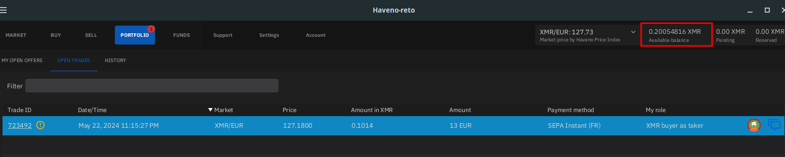 Haveno DEX Bank Transfer (ex: SEPA) -> XMR transaction