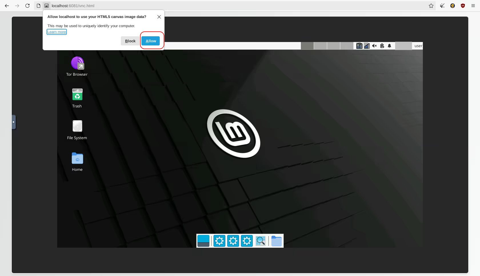 (By the way, you will need to allow canvas data extraction and reload the page, if you're using Mullvad Browser, in order to make the mouse cursor look correct. Remember this when you access remotely on Tor Browser later as well)