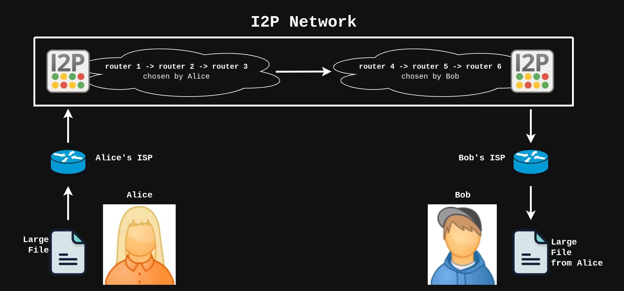 By now, Alice and Bob have I2P running in the background on their computers.