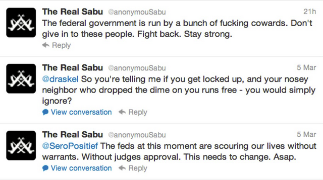 In addition, Sabu assisted the Federal Bureau of Investigation in identifying members of Anonymous and AntiSec, leading to the arrest of several prominent hackers. During this period, he continued to operate online under his alias while secretly cooperating with authorities, at times using infrastructure provided by the FBI. He even continued to post anti government statements on twitter during this time. Because his arrest was initially kept confidential, other hackers maintained their trust in him.