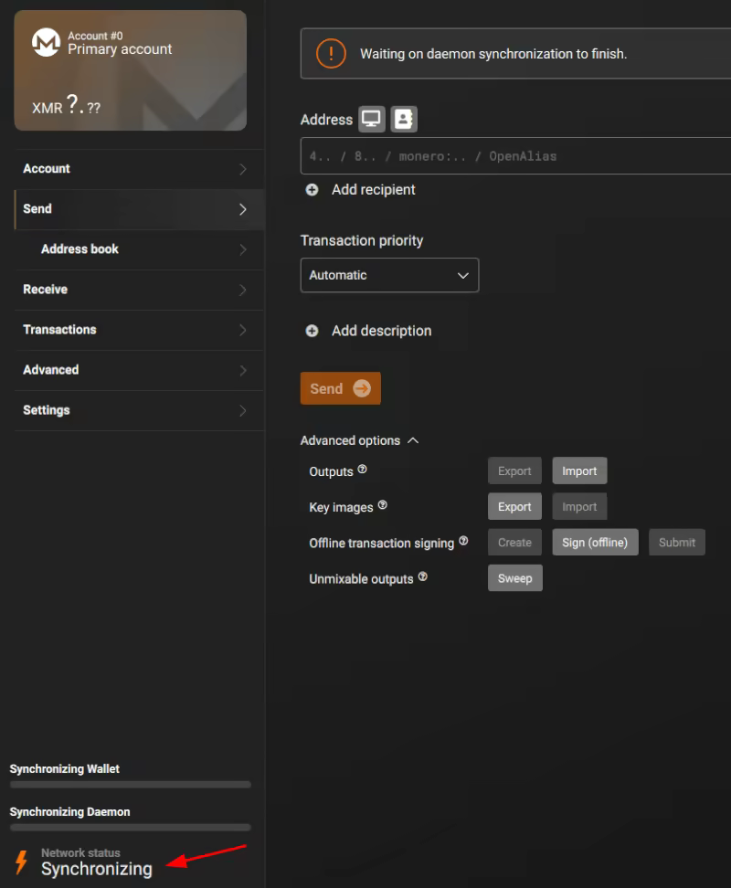 With the connection established, all that is left to do is to wait synchronization to finish.