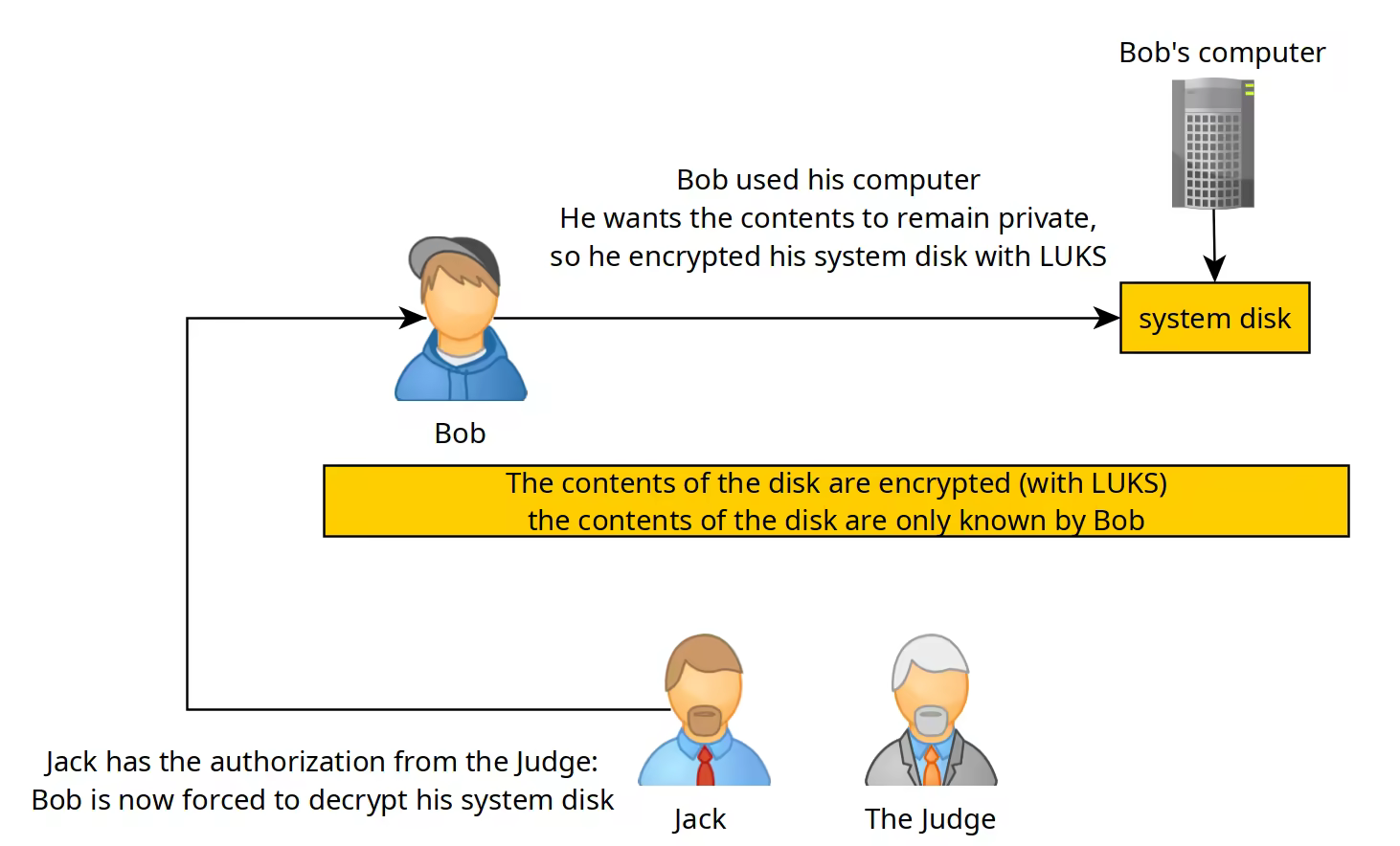 On the clientside, the core scenario is to explore how to ensure that the individual's operations can survive a police raid, and the order from the judge where he's forced to type his own password.