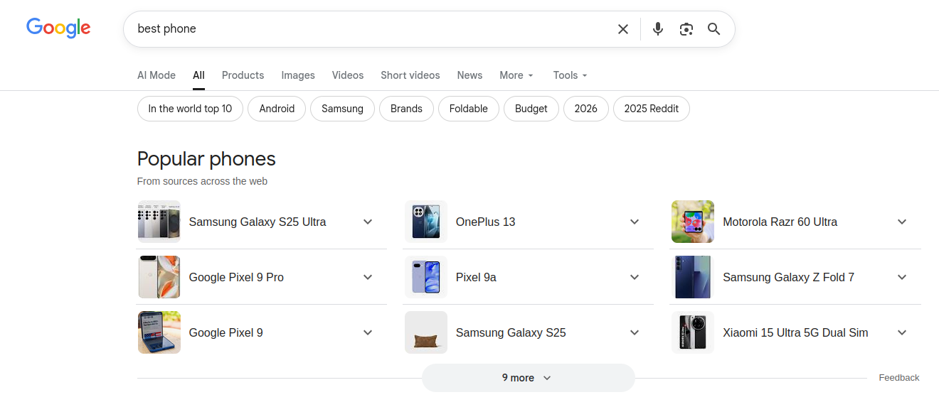 For example, imagine you are looking to buy a new phone to replace your current one. You might type "best phone" into Google. What often happens is that the first results you see are predominantly Android phones, devices that Google has a degree of influence over and that are used to spy on you.