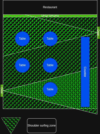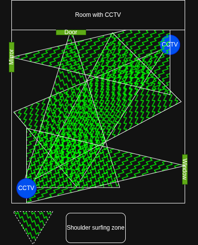 As you can see, shoulder surfing zones can be quite large in many situations, and the risk becomes even greater if you leave your device unlocked and unattended. In that case, the entire room effectively becomes a shoulder surfing zone. Remember that you cannot rely on anyone else to protect your sensitive activities. Even when people have no malicious intent, they can make mistakes that lead to exposure. For example, if a family member enters a room where you left your device unlocked and records a video of themselves to post on social media, your screen activity could be captured as well and uploaded online.