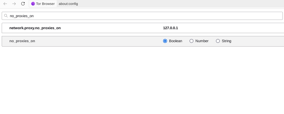 search for no_proxies_on in the search bar, and add 127.0.0.1 to it
