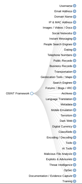 However, one element is especially important for OSINT researchers: tools. As with any discipline, having the right tools significantly improves efficiency. One particular tool that deserves special attention is OSINT Framework.