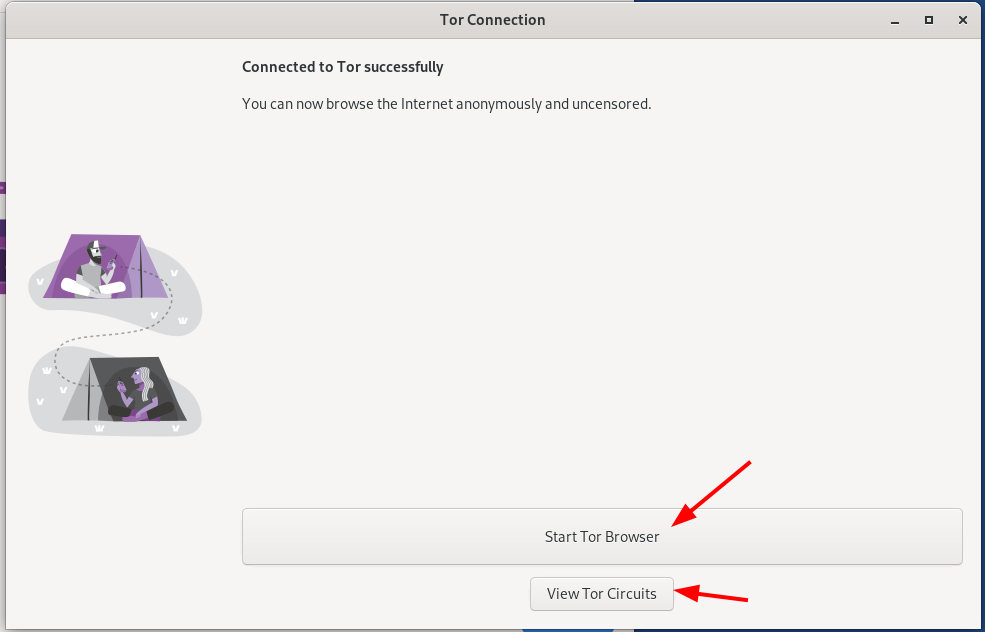 And here we click start the Tor browser to browse the web anonymously, and if you're curious and want to see the tor Circuits you can view them also:
