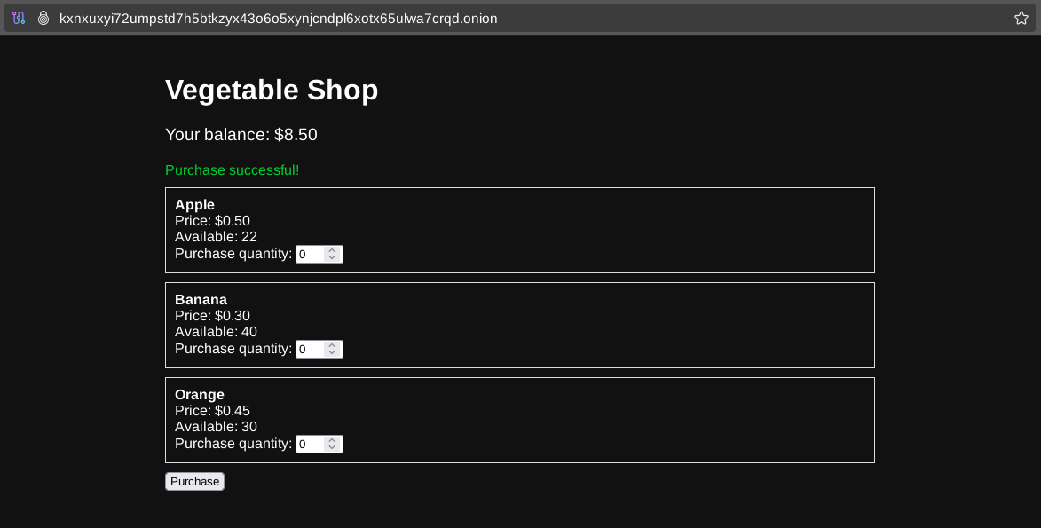 Now, go to your onion domain and verify the vegetable shop is accessible on the Tor network.